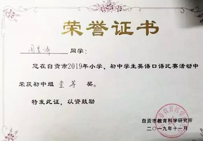 川貢衡川,我校學(xué)子喜獲自貢市初中生英語口語比賽一等獎