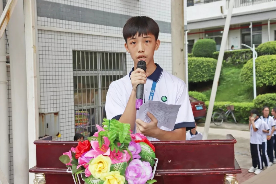 李仕壕同學(xué)作為新團員代表發(fā)言;共青團不僅代表著榮譽,還代表著責任。加入的共青團員不止代表著個人還代表著團組織,所以要時刻注意自己的行為,不能使團組織榮譽受損,在日常的生活中,牢記自己是一名共青團員 服從學(xué)校與團組織的安排,積極幫助老師同學(xué)等。