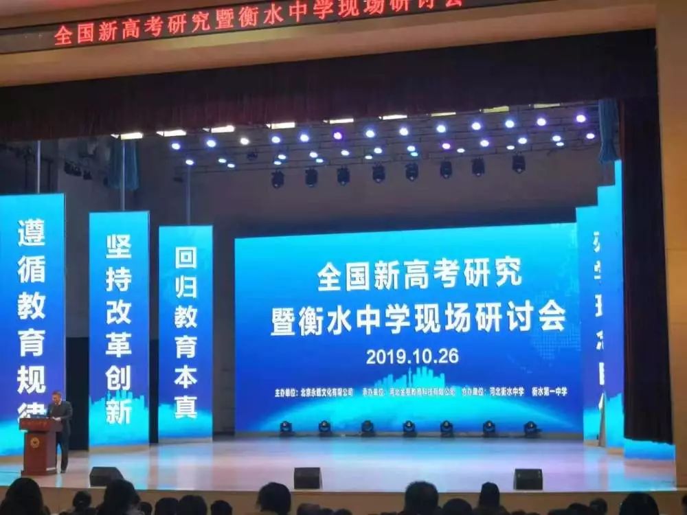 上午8:15分,研討會在博雅館準時開始。衡水第一中學黨委書記,校長郗會鎖致辭。他提到,大家齊聚一堂研討新課改的背景下,我們如何“遵循教育規(guī)律,堅持改革創(chuàng)新,回歸教育本真”這一話題。
