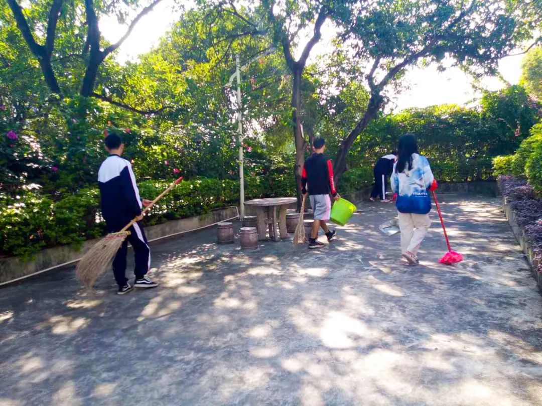 同學(xué)們充分發(fā)揚(yáng)了團(tuán)結(jié)協(xié)作,不怕臟,不怕累的精神,用勤勞的雙手美化著共同的家園,過往的老師們看見這群零零后們,竟能像螞蟻搬家一樣勤勞,都不約而同的微笑著投來了贊許的目光,紛紛豎起大拇指。
