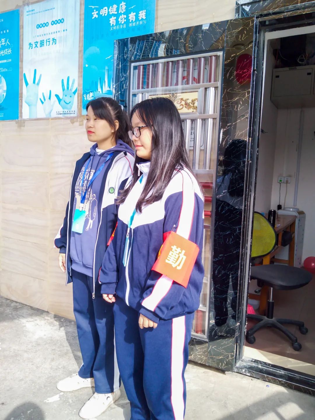 周末的校園門崗處,同學(xué)們往來有序,為寧?kù)o的校園增添假期的愜意。值班的保安叔叔說,周末同學(xué)們進(jìn)出校園都要按照學(xué)校的相關(guān)規(guī)定檢查請(qǐng)假條,檢測(cè)并登記體溫,這讓原本安靜的值班處變得忙碌起來。志愿者的到來,往來登記的師生們,井然有序,確保周末校門口暢通無阻,文明執(zhí)勤。