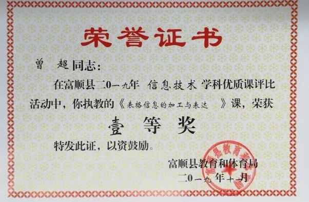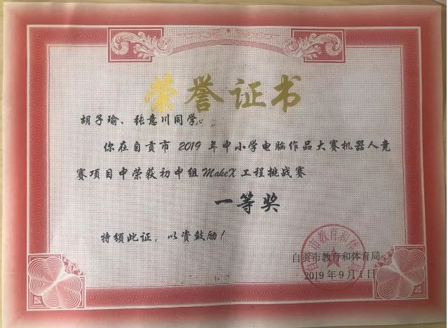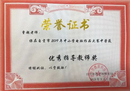 學(xué)生獲2019年四川省中小學(xué)電腦制作活動(dòng)機(jī)器人競(jìng)賽省二等獎(jiǎng)1項(xiàng)、三等獎(jiǎng)2項(xiàng)。