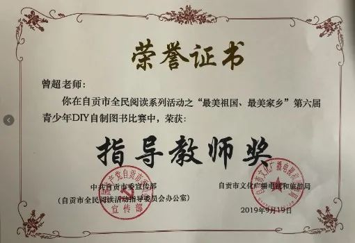 學(xué)生獲自貢市第六屆青少年DIY 自制圖書比賽一等獎(jiǎng)。